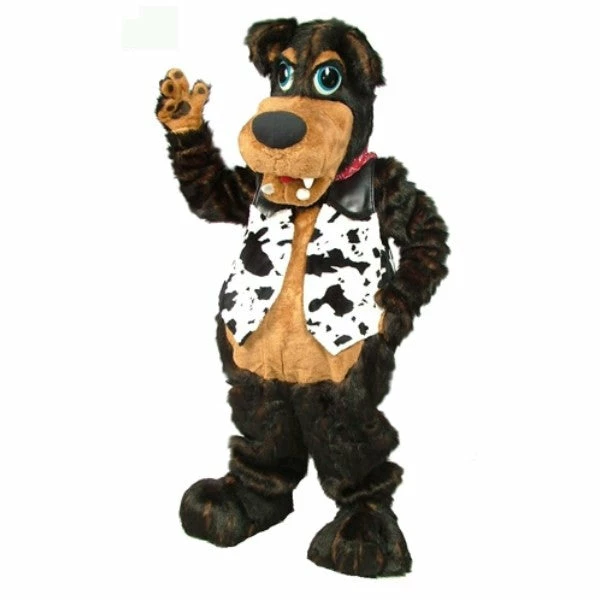 Bart T. Bear is a cartoonish character mascot costume. This great Bear Mascot Costume includes head, body with chubby vest padding, hands, feet, and cow-pattern vest.