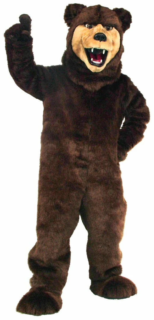 Here are the bear facts on this Grizzly Bear Mascot: He’s a friendly bear with soft brown fur. He includes a head, body, hands, and feet. Vision is through the mouth.