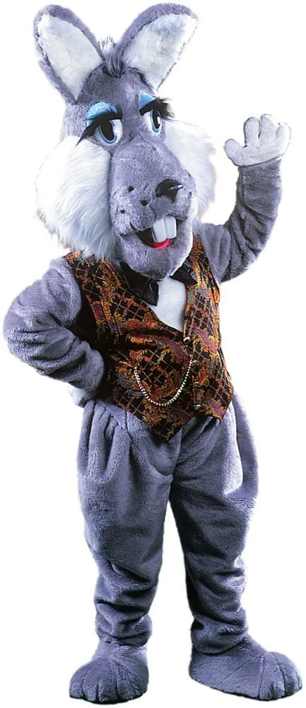 This avuncular Jack L. Rabbit Mascot Costume is perfect for an Easter celebration! Features gray fur with fluffy white cheeks, and includes the head, body, hands, and feet. Vision is through the mouth. Vest and bow tie not included – available for an additional fee.