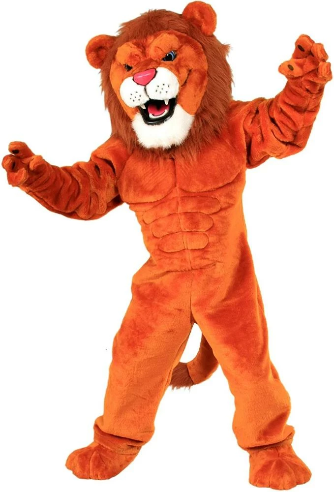 The king of the jungle has never looked so good! This fierce Power Cat Lion Mascot Costume has sewn-in muscles on the chest. Costume includes the head, body, hands and feet. Vision is through the mouth.