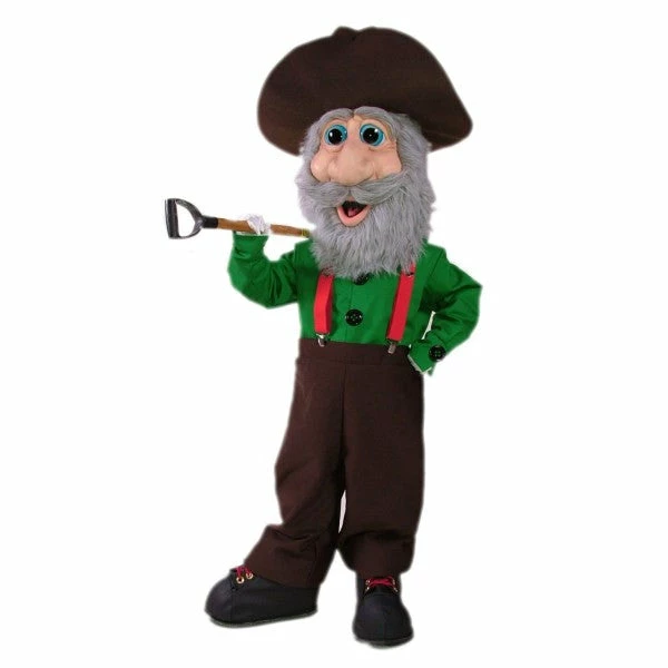This cheerful, old-timey Miner Mascot Costume still remembers the Gold Rush! Miner Mascot Costume includes the character head with fluffy gray beard, a hat, pants, shirt, and jumbo shoes. Vision is through the mouth. Shovel is not included.
