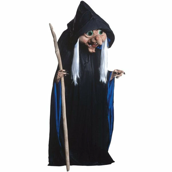 Stir up a cauldron full of Halloween fun in this Rosie Witch Mascot Costume! This extra-tall (up to 8 feet, depending on the height of the wearer) mascot costume includes a head with long white hair and a long black robe with blue lining. Vision is through the mouth.