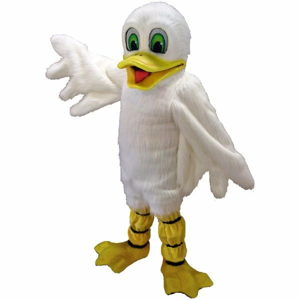 This white duck is the funniest fowl this side of the pond! This Male Duck Lightweight Mascot Costume has shaggy white fur for a feathery look, yellow duck Feet, and a friendly face with big green eyes and a quacky grin on his yellow beak. Comes complete with head, body, hands and Feet.