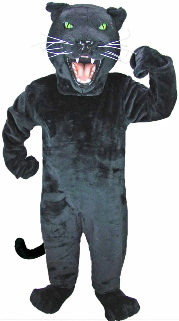 Stalk your prey and pounce to victory in this Black Panther Mascot Costume! Features velvety black fur and a fierce expression that’s sure to fire up a crowd. Comes complete with head, body, hands and Feet.