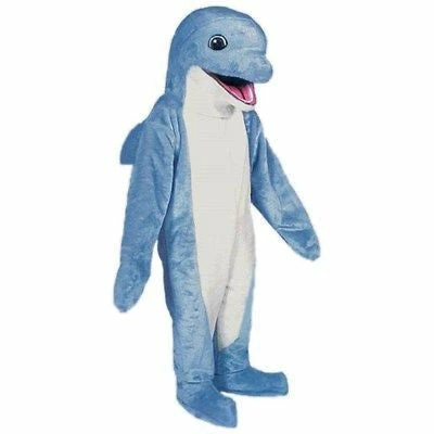This friendly dolphin loves to frolic in the ocean waves! Blue dolphin mascot costume has a white underbelly and a pleasant smile. Comes complete with head, body, hands and Feet.