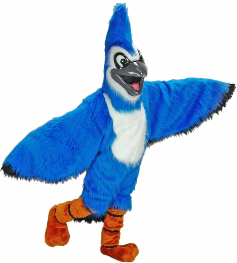 The boundless energy of this Blue Jay mascot will spur the team to victory! Blue Jay Mascot Costume has a blue feathery body with white belly, head with blue crest and silver beak, and a pair of orange bird Feet. Comes complete with head, body, hands and Feet.