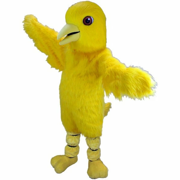 This cute little yellow canary is free as a bird! Lightweight Canary Mascot Costume has bright yellow, feathery fur, brown eyes, and yellow bird Feet. Comes complete with head, body, hands and Feet.