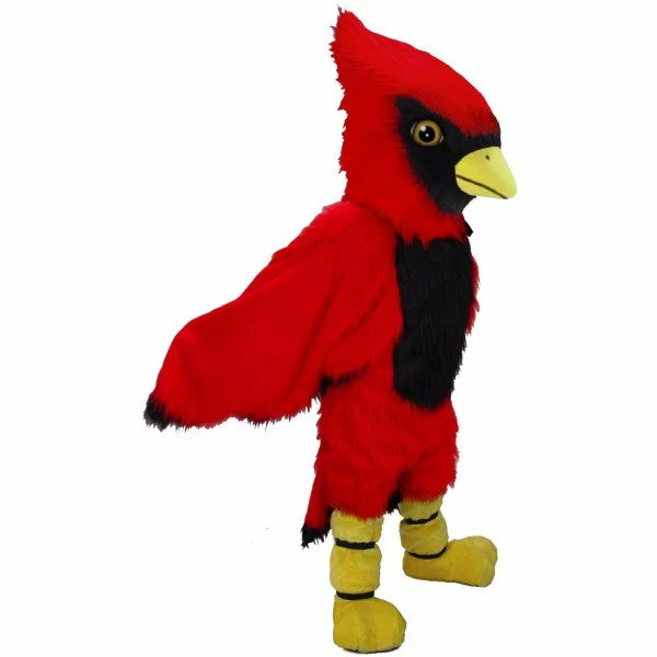 Cheer the Cardinals to victory in this stunning mascot costume! This Cardinal Lightweight Mascot Costume has bright red feathery fur with black face and tummy, yellow beak, and yellow bird Feet. Comes complete with head, body, hands and Feet.