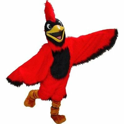 This fun-loving Cardinal Mascot is so cheerful, it’s contagious! Cardinal Mascot Costume has a bright red, feathery body with a black tummy, head, and wing trim. Also has a pair of orange bird Feet. Comes complete with head, body, hands and Feet.