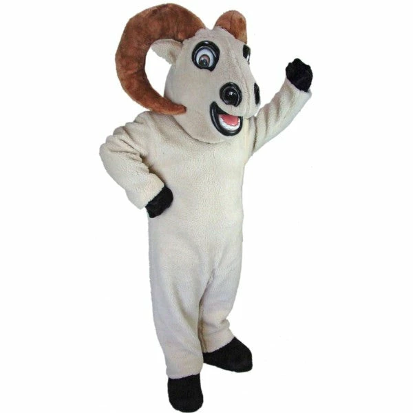 His horns are big, and so is his heart! This Bighorn Sheep Mascot Costume has wooly white fur with black hooves and a magnificent pair of brown horns. Comes complete with head, body, hands and Feet.