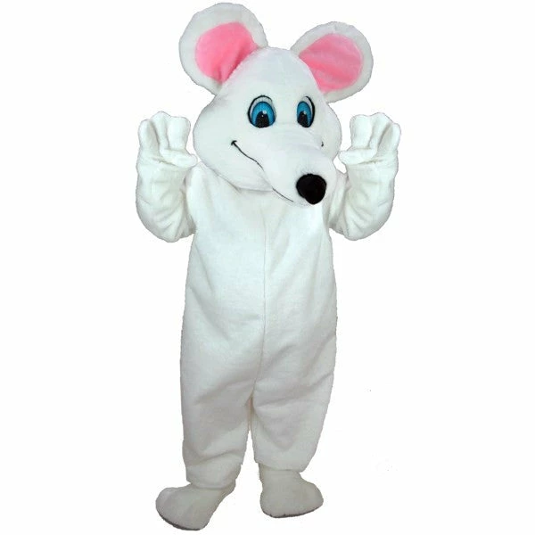 A friendly mouse with a great big smile! This White Mouse lightweight mascot costume has a cheerful face with bright blue eyes and soft, snow-white fur. Comes complete with head, body, hands and Feet.