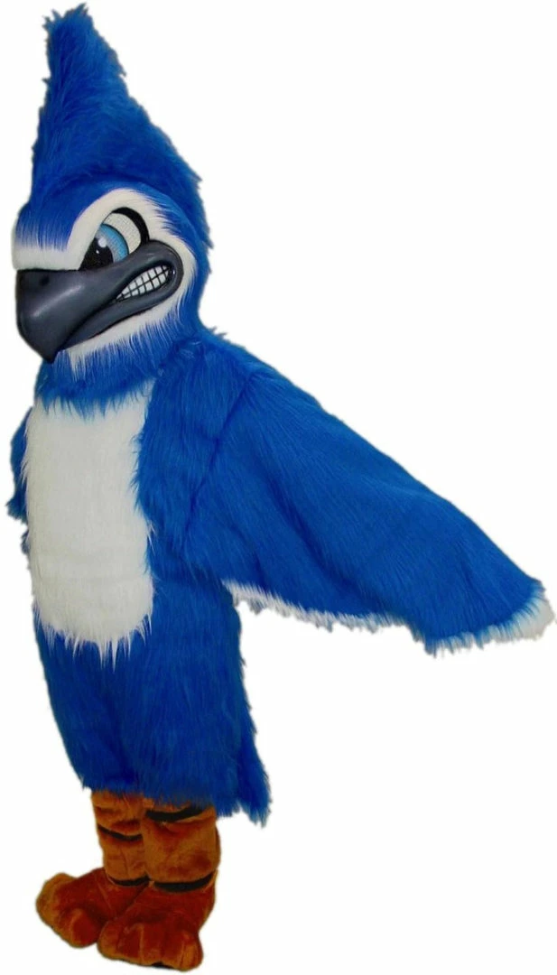 This professional-quality Blue Jay Mascot Costume is made to order in the USA. Please allow 2-3 weeks for construction. The head is constructed from molded foam and latex for superior detail and durability. The head includes a screened vision panel, comfort ventilation panels, and a built-in cooling fan.