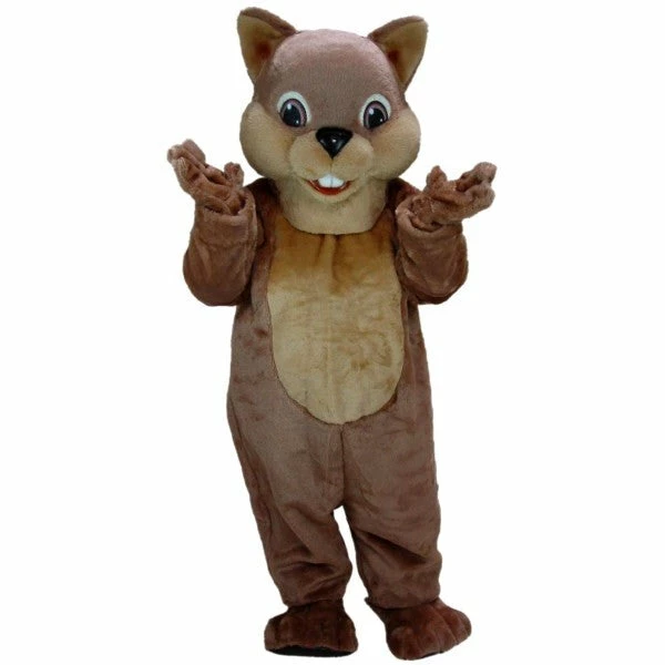 Keep your chin up! This Chipper the Chipmunk Mascot Costume has brown fur with a lighter tan tummy and face and a friendly smile. Comes complete with head, body, hands and Feet.