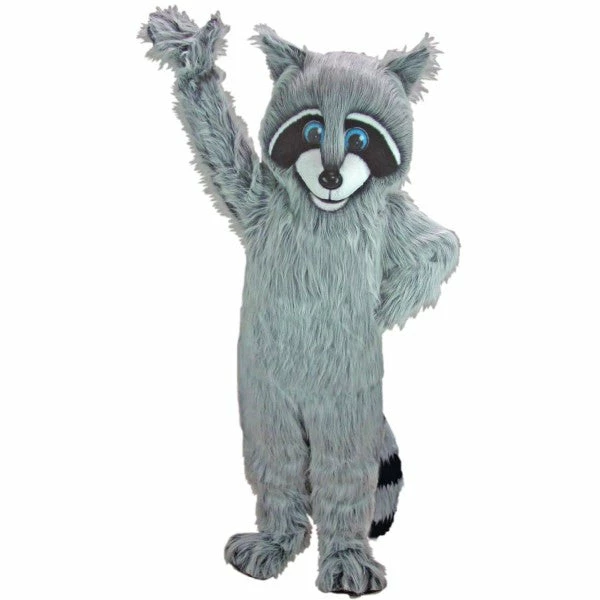 This friendly raccoon has big ideas and big plans! Raccoon Mascot Costume has shaggy gray fur with a black “mask” and striped tail. Comes complete with head, body, hands and Feet.
