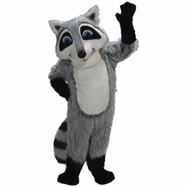 Meet Ricky Raccoon! This friendly Raccoon Mascot Costume has gray fur with a white tummy and face, black “eyemask,” striped tail, and black hands and Feet. Comes complete with head, body, hands and Feet.