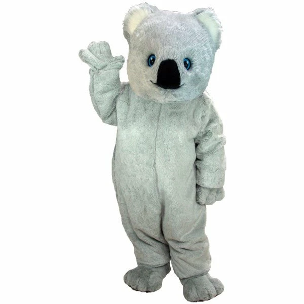 A friendly koala has come down from the trees to make new friends! This gray Koala lightweight mascot costume has a lovable face with bright blue eyes and fuzzy fur. Comes complete with head, body, hands and Feet.