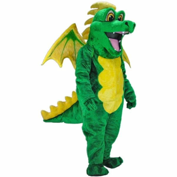 With a friendly grin, this Happy Dragon Mascot Costume will bring fantastic fun wherever he goes! The body is green with yellow tummy, spines down the back and tail, and a pair of wings. Comes complete with head, body, hands and Feet.