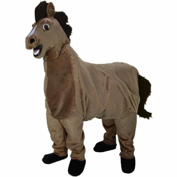 Say “Hey!” for this excellent horse mascot costume. A great looking, deluxe quality mascot costume, this horse costume is designed to be worn by two people. Includes head, body, and two pairs of jumbo oversize Feet.
