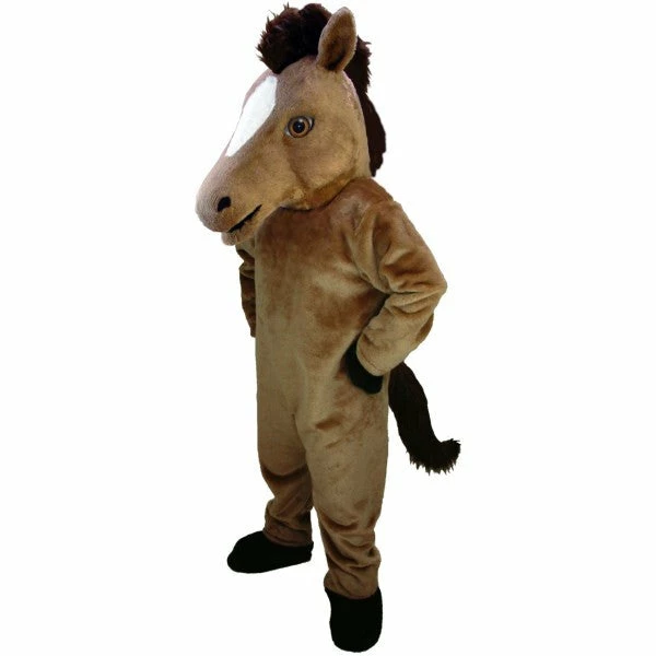 Let’s rock, Mustangs! This Mustang Lightweight Mascot Costume features tan-brown fur, a darker brown mane and tail, and a friendly horse face with a white patch on his nose. Comes complete with head, body, hands and Feet.