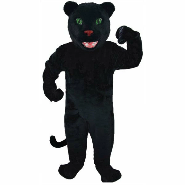 Cheer the team to victory in this Panther mascot costume! Sleek black fur and bright green eyes give this panther a striking look. This complete mascot costume features a light weight head includes body, Feet, and hands.