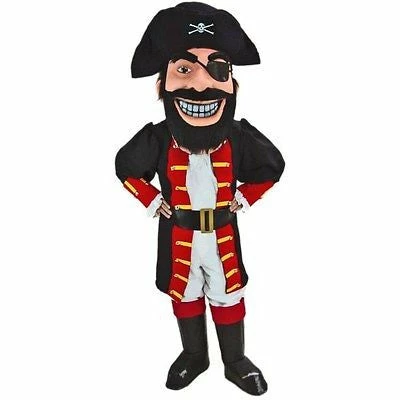 Shiver me timbers, this be a fine Pirate Mascot! Redbeard Mascot Costume, despite his name, features a black beard, pirate captain’s hat, and fancy pirate costume with black boots. Comes complete with head and clothing.
