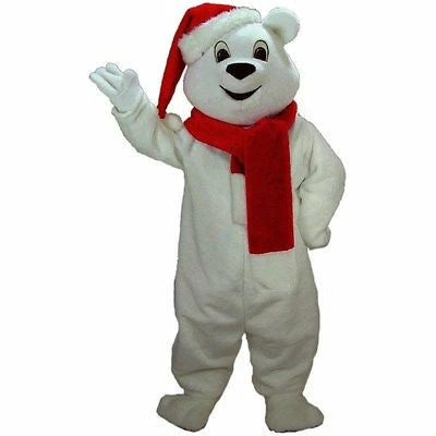 Get ready for the holidays with this Snow Bear Mascot Costume! This polar bear mascot is dressed for winter in a Santa hat and red scarf. Comes complete with head, body, hands and Feet.