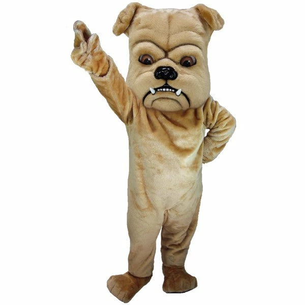 The bulldogs are sure to charge to victory with this mascot on their side! Tan Bulldog lightweight mascot costume features a wrinkled face with little fangs and soft tan fur. Comes complete with head, body, hands and Feet.