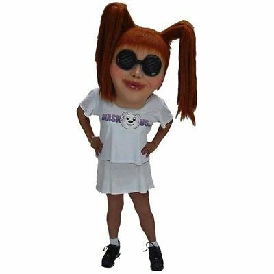 Serve up the fun in this Tennis Pro Mascot Head! Costume has pigtails, a pair of black sunglasses, and a funny character face. Includes head only.
