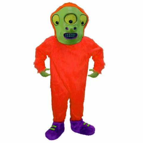 This wacky creature could only have come from another planet! Toon Alien Lightweight Mascot Costume has bright orange fur, purple sneakers, and a green face with three yellow eyes. Comes complete with head, body, hands and Feet.
