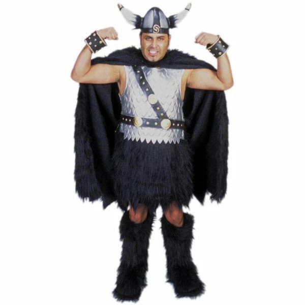 Put your own face on a fierce Viking warrior in this Viking Mascot Costume! This viking mascot costume includes the horned helmet, wrist guards, armor top, and a faux fur cape, kilt, and boots.