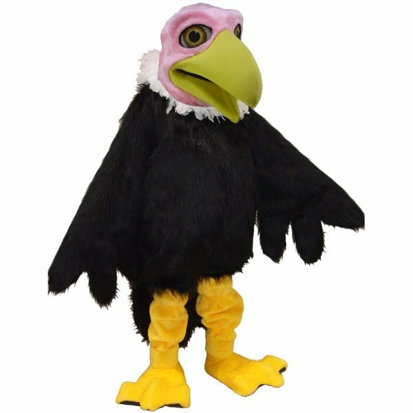 Here’s a bird of a different feather! This Vulture Lightweight Mascot Costume has a pink face with yellow beak, brown feathery fur and wings with white collar, and yellow bird Feet. Comes complete with head, body, hands and Feet.